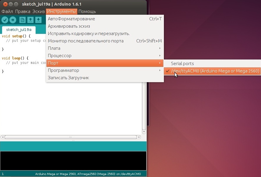 Осталось запустить среду разработки Arduino IDE (рис. 3.2). В новой версии Arduino IDE в списке доступных портов отображается название платы Arduino.
