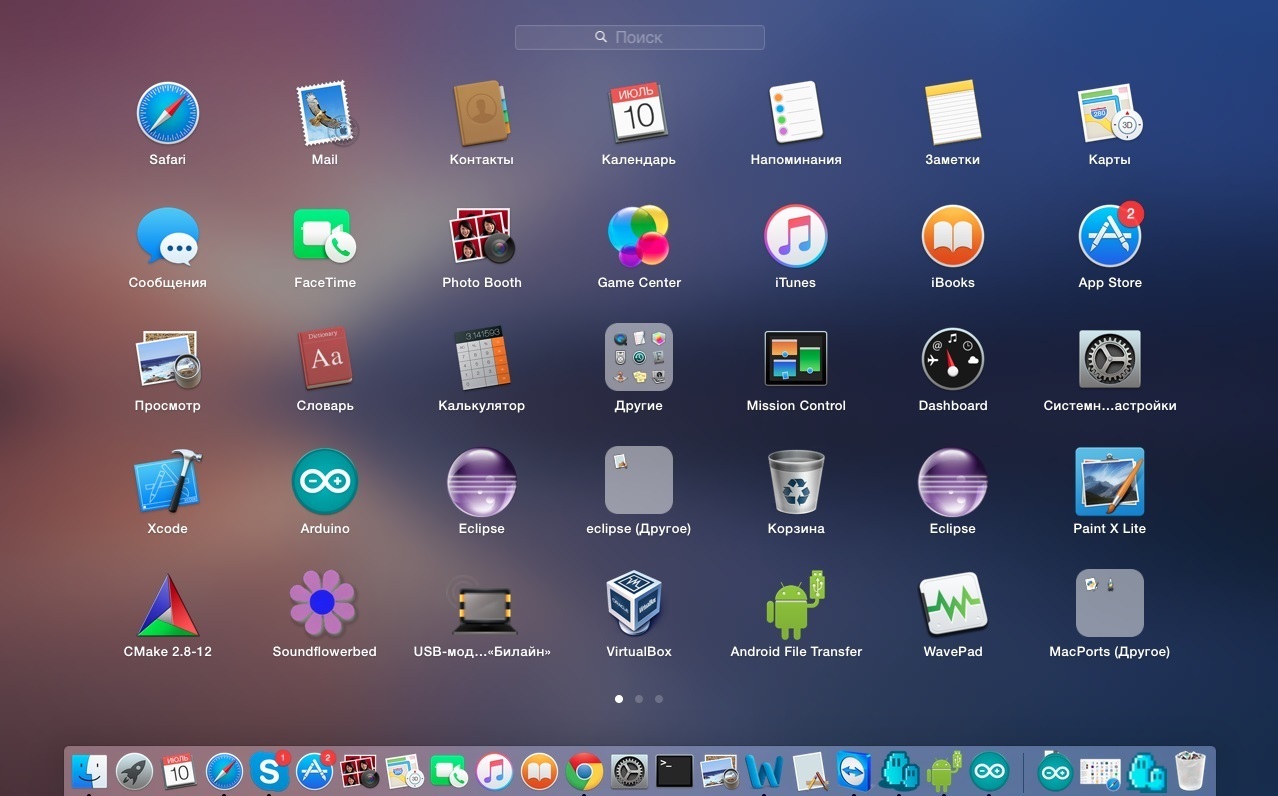 Теперь рассмотрим установку Arduino IDE в операционной системе Mac OS X. Cкачиваем со страницы загрузки официального сайта проекта Arduino – https://www.arduino.cc/en/Main/OldSoftwareReleases#previous (рис. 3.1) архив с версией программы для OS X. Распаковываем архив и копируем его содержимое в папку Программы. Теперь Arduino IDE находится в списке программ Launchpad (рис. 3.4).