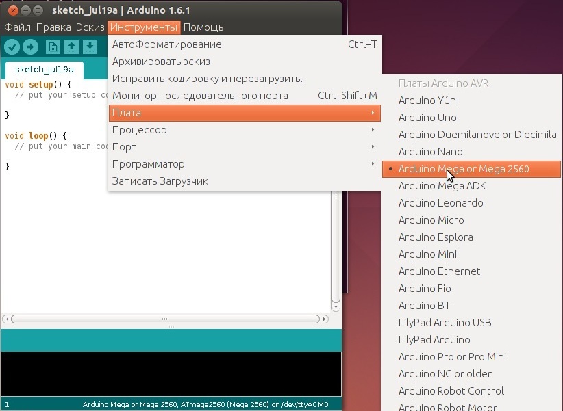 Перед загрузкой скетча требуется задать необходимые параметры в меню Инструменты | Плата — как показано на рис. 3.5, и Инструменты | Последовательный порт— показано на рис. 3.2.