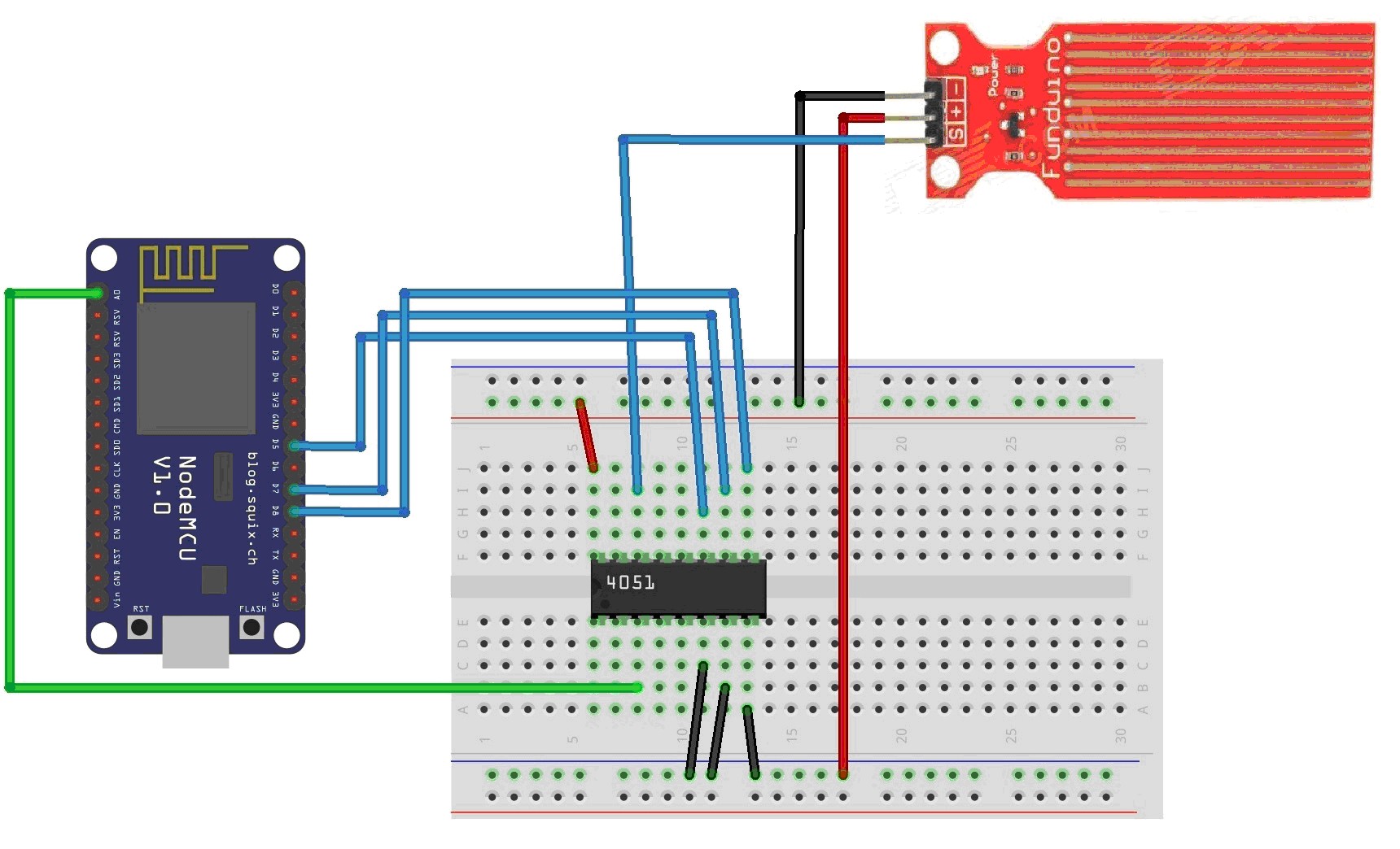 Теперь рассмотрим подключение датчика уровня воды к модулю NodeMcu ESP8266.