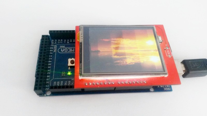 Рис. 5.2. Установка TFT shield 2.4" 240x320 на плату Arduino Mega.