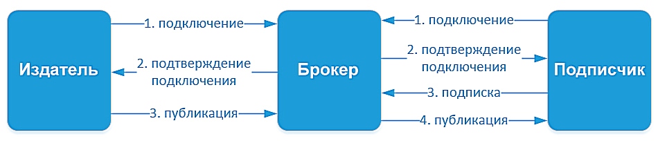 Рис. 9.1. Схема простого взаимодействия по протоколу MQTT.