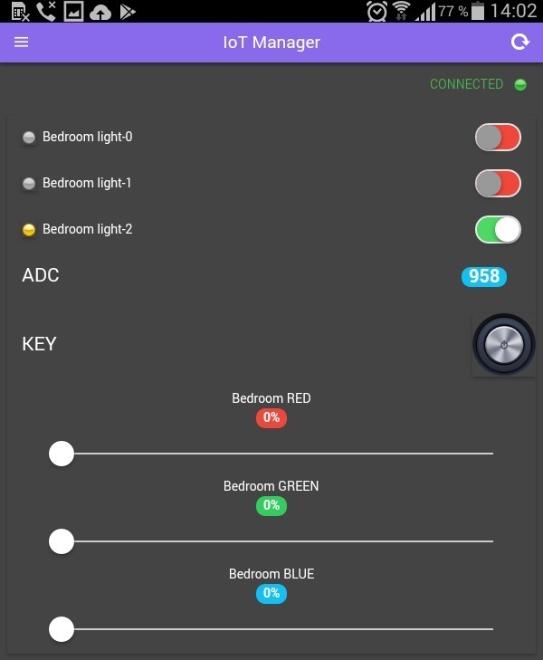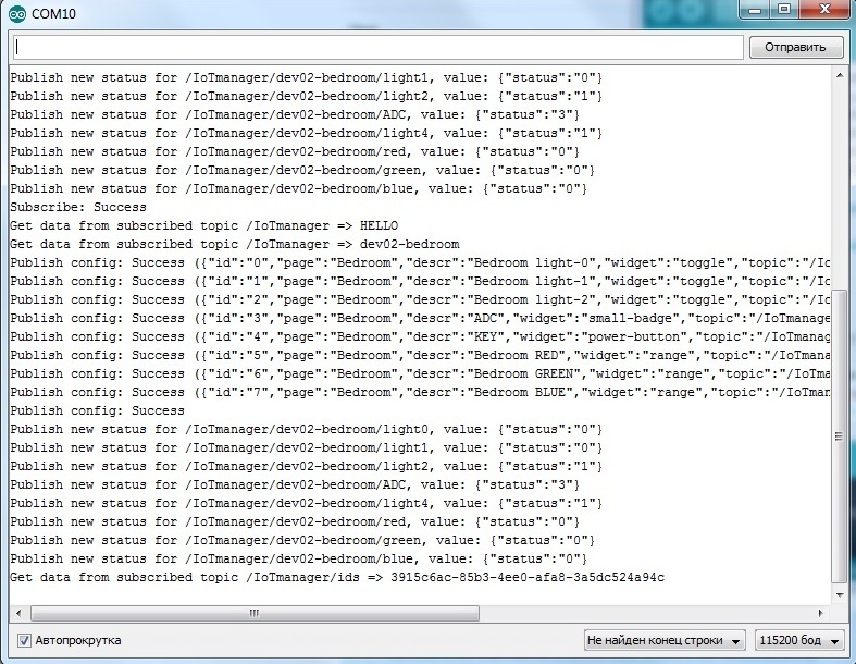 Но IoTManager не только подписан на темы, но также выступает в роли publisher – публикует данные в темы. Это значения слайдеров и статус кнопки. Эти данные плата NodeMCU, подписанная в качестве subscriber на эти темы, может использовать для управления, подключенными к плате устройствами.