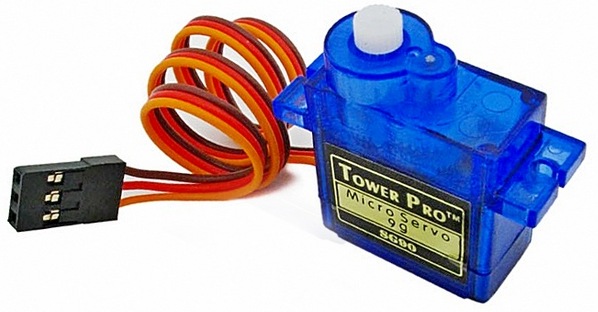Сервопривод (см. рис. 17.1) – устройство, обеспечивающее преобразование сигнала в строго соответствующее этому сигналу перемещение (как правило, поворот) исполнительного устройства. Представляет собой прямоугольную коробку с мотором, схемой и редуктором внутри и выходным валом, который может поворачиваться на строго фиксированный угол, определяемый входным сигналом.
