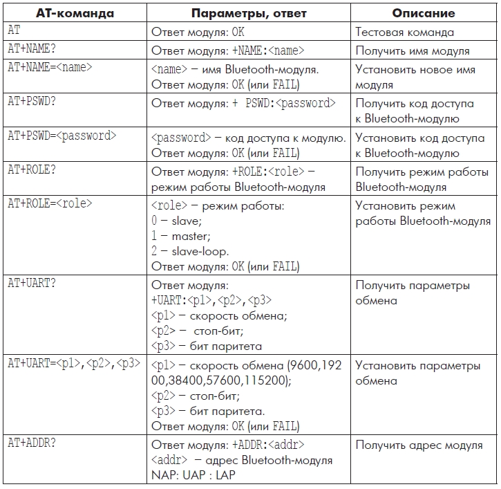 Bluetooth (с англ. – «голубой зуб») – одна из технологий беспроводной передачи данных. Спецификация была разработана в 1998 г. компанией Ericsson, а позднее оформлена группой Bluetooth Special Interest Group (SIG), официально зарегистрированной 20 мая 1999 г. Bluetooth позволяет объединять в локальные сети любую технику: от мобильного телефона и компьютера до холодильника. При этом одним из немаловажных параметров новой технологии являются низкая стоимость устройства связи (в пределах 20 долларов), его небольшие размеры (ведь речь идет о мобильных устройствах) и, что немаловажно, совместимость, простота встраивания в различные устройства. Мы будем использовать недорогой модуль HC-05. В нем используется чип BC417 плюс Flash-память и выводы GPIO.