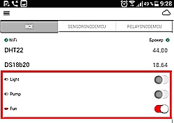9.4. Управление из IoT Manager исполнительными устройствами на плате NodeMCU В данной главе рассмотрим управление исполнительными устройствами, подключенными к NodeMCU, из мобильного приложения IoT Manager. В скетч для NodeMCU необходимо внести следующие изменения. Изменяем количество виджетов для отображения (увеличение на количество исполнительных устройств). Подробнее ... |